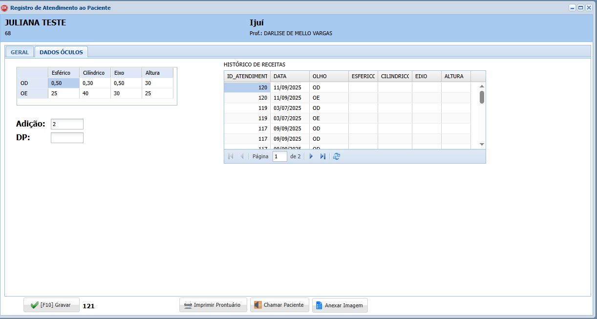 O profissional registra os dados do exame diretamente no sistema, incluindo as informações completas do grau do paciente, e gera a receita em segundos, já formatada e pronta para impressão. Mais agilidade, precisão e praticidade no dia a dia.